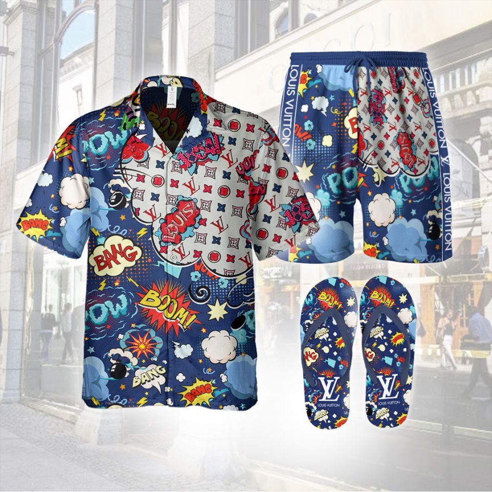 Luxury LV Combo Hawaiian Shirt, Short & Flip Flops SS2025 Blue – LXSTHA016401