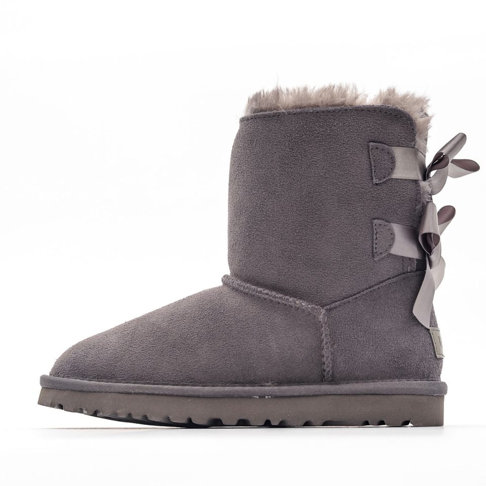 UGG Mini Bailey Bow II Boot Fleece Lined Snow Boots Grey NNL241107045